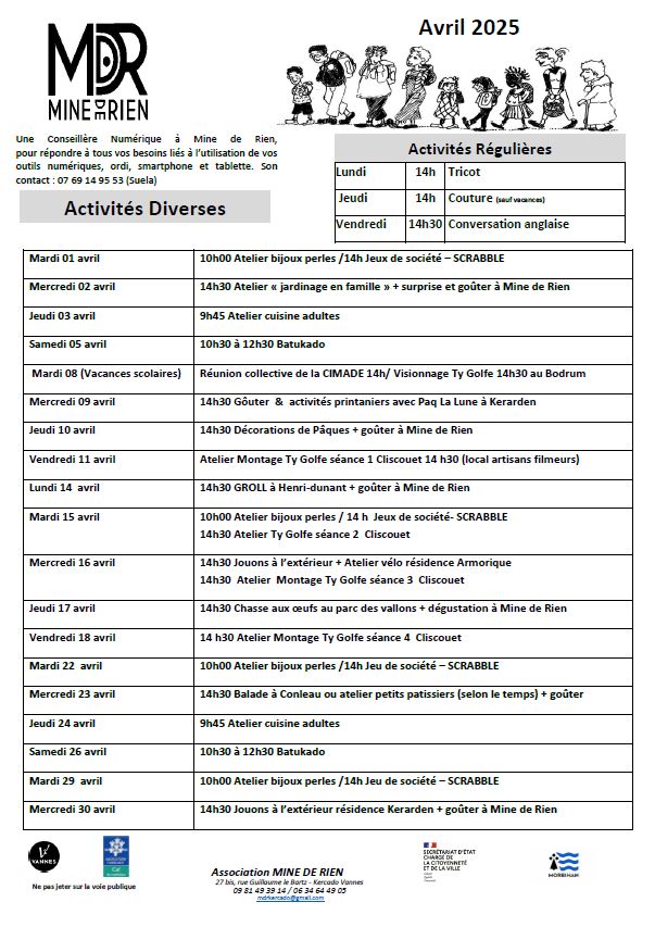 Programme du mois d’Avril